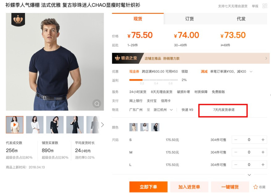 變化點(diǎn)4、鎮(zhèn)店之寶的商品必須開通買家保障服務(wù),同時(shí)需滿足加入24/48/72小時(shí)發(fā)貨保障服務(wù)之一。