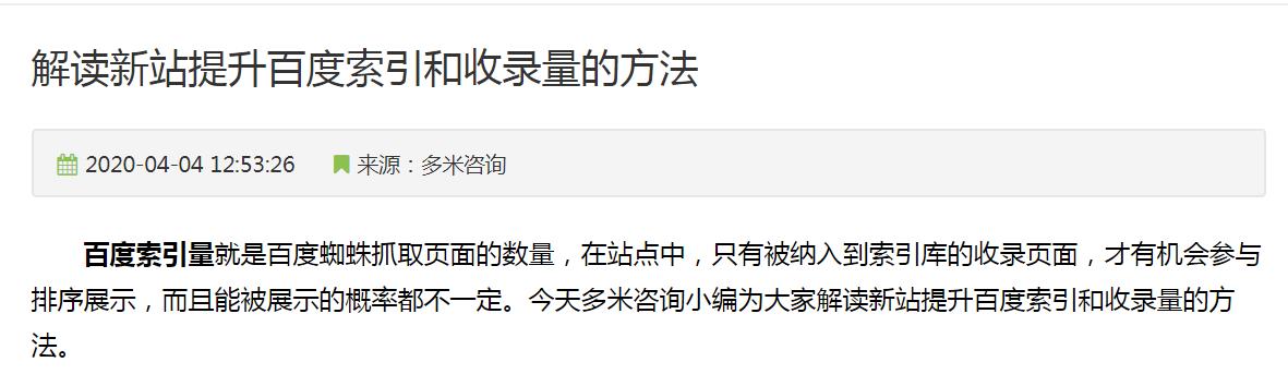 《百度搜索優(yōu)質(zhì)內(nèi)容指南》的發(fā)布,對(duì)我們做搜索引擎優(yōu)化的同學(xué)們,又是一個(gè)新的參考,多米咨詢小編也提醒大家,優(yōu)質(zhì)內(nèi)容,原創(chuàng)內(nèi)容,也會(huì)得到百度更多的排名機(jī)會(huì)。